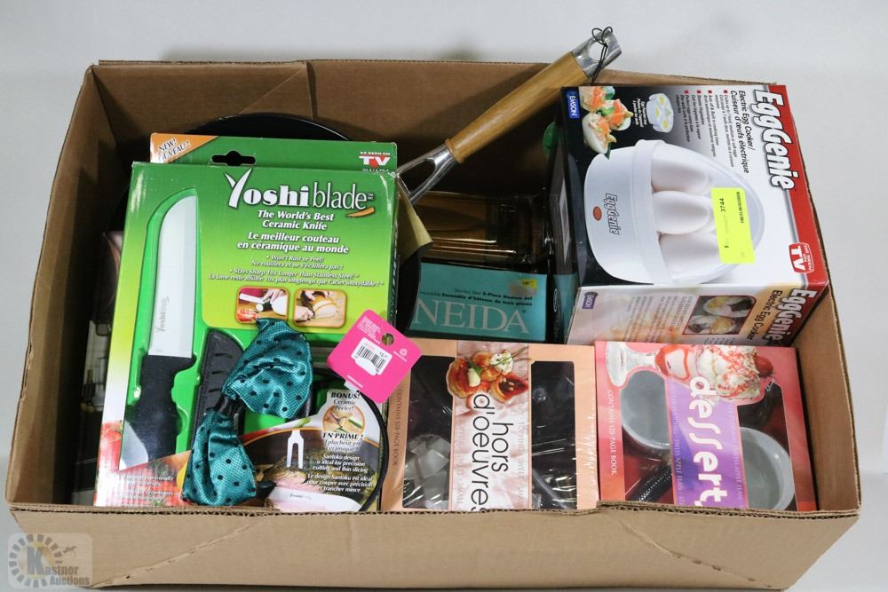 BOX OF NEW KITCHEN ASST,EGG GENIE,COOK BOOK,YOSHI