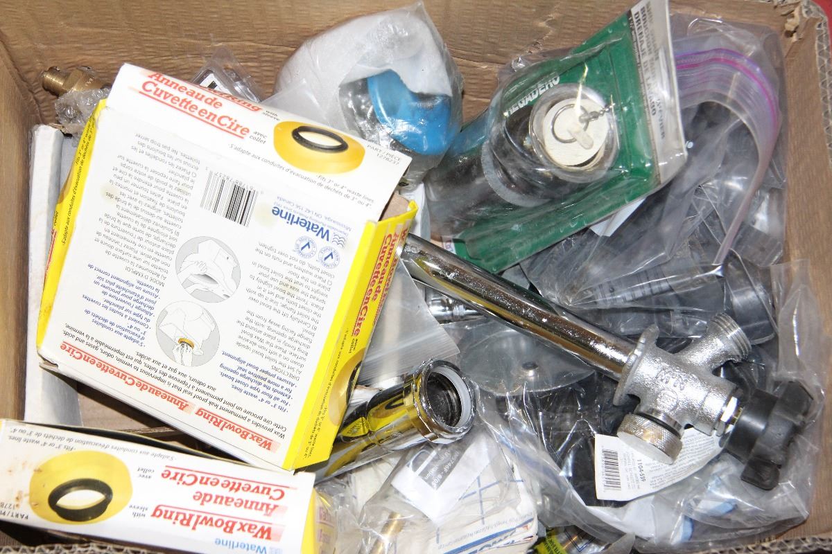 BOX OF NEW PLUMBING SUPPLIES INCL.