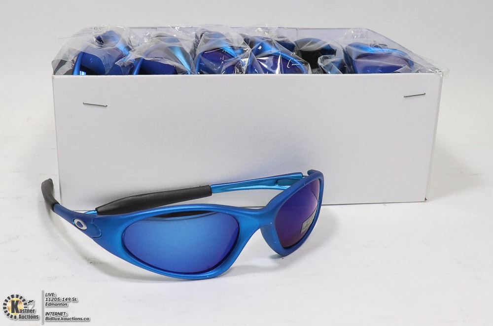 BOX OF OAKLEY STYLE AQUA BLUE DESIGNER SUNGLASSES