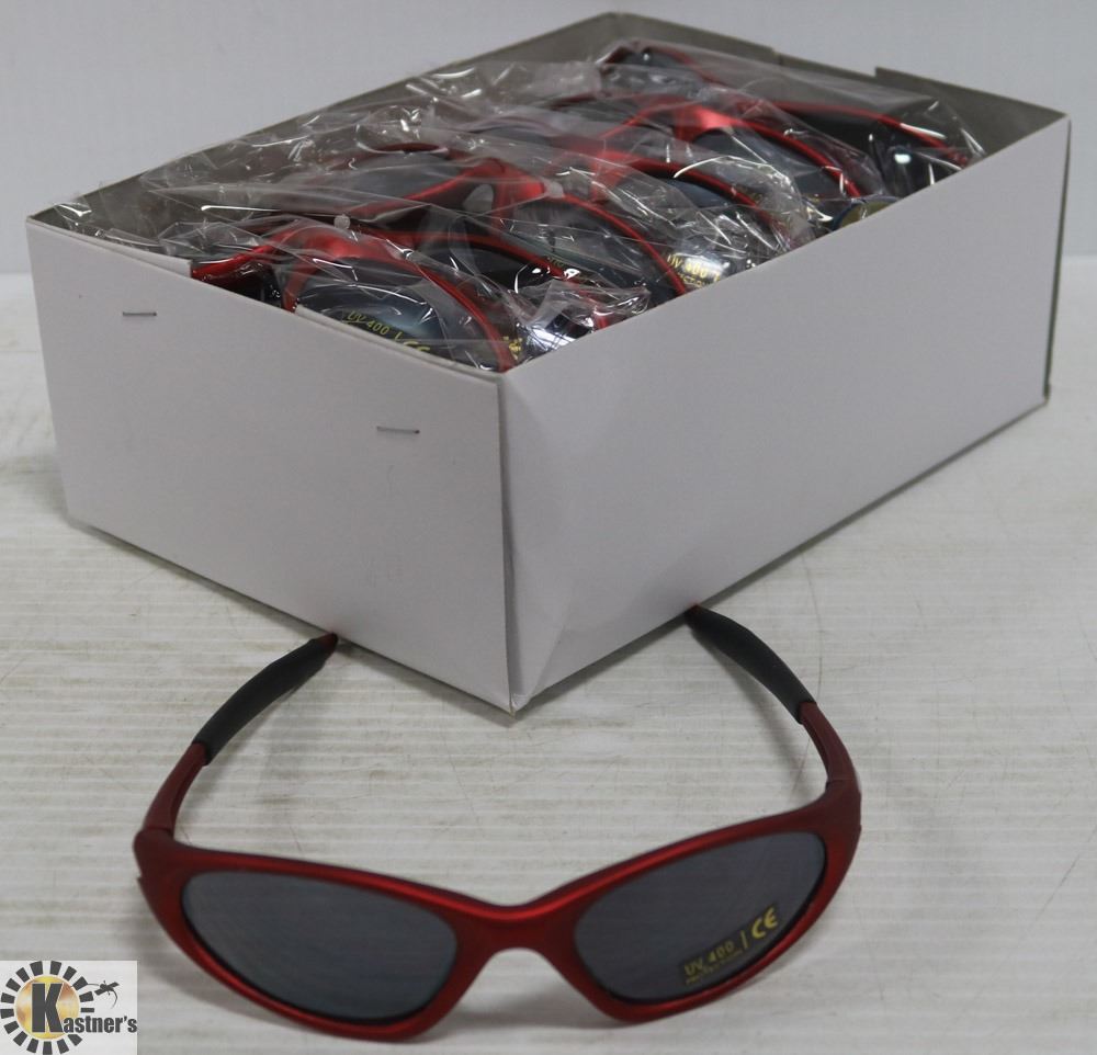 BOX OF OAKLEY STYLE RED DESIGNER SUNGLASSES