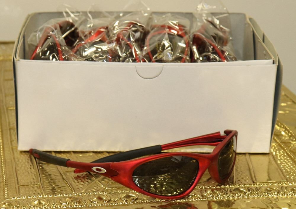 BOX OF OAKLEY STYLE RED SUNGLASSES