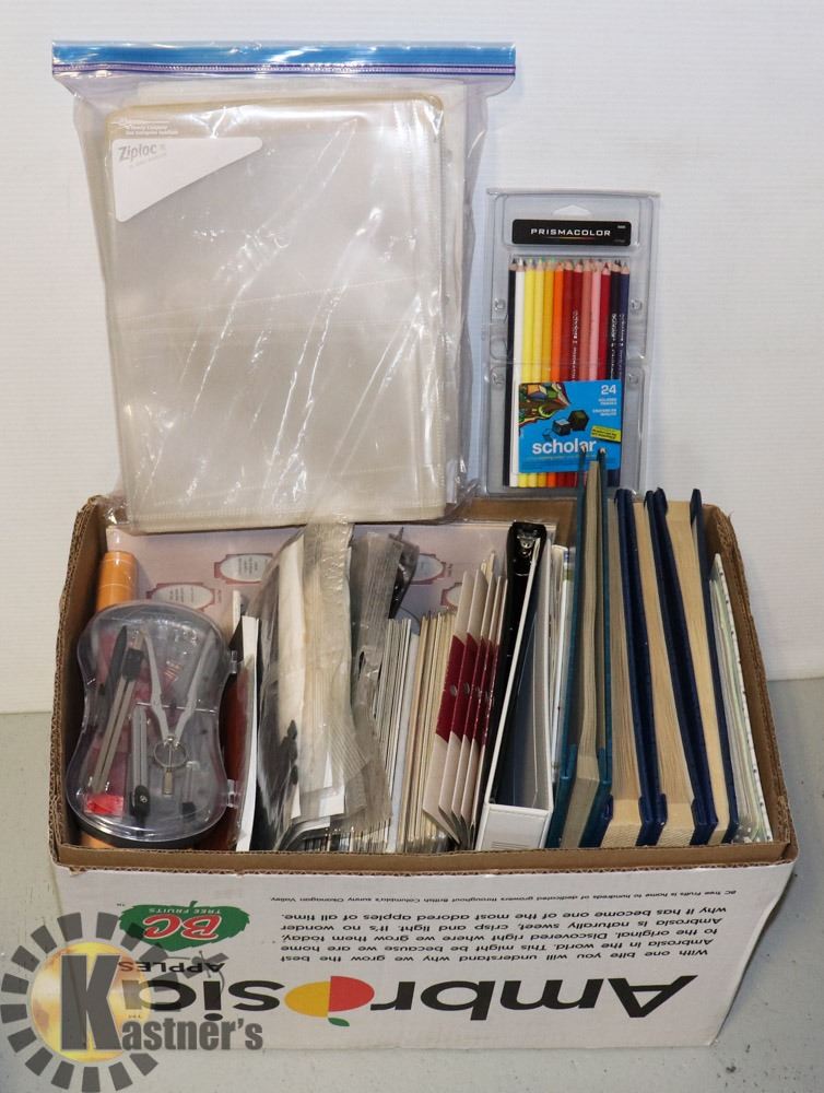 BOX OF OFFICE AND CRAFT SUPPLIES