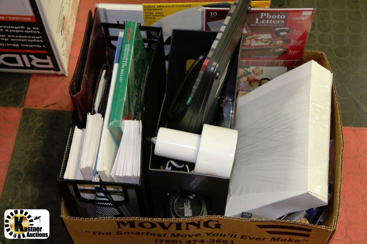 BOX OF OFFICE SUPPLIES & NEW PRODUCTS