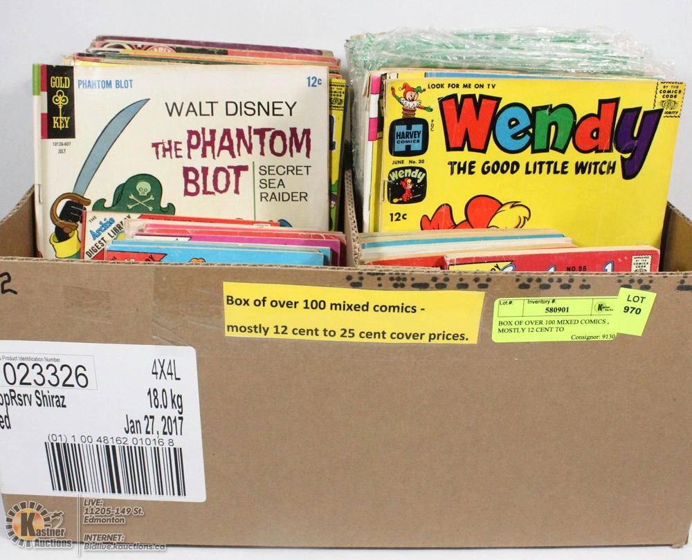 BOX OF OVER 100 MIXED COMICS , MOSTLY 12 CENT TO