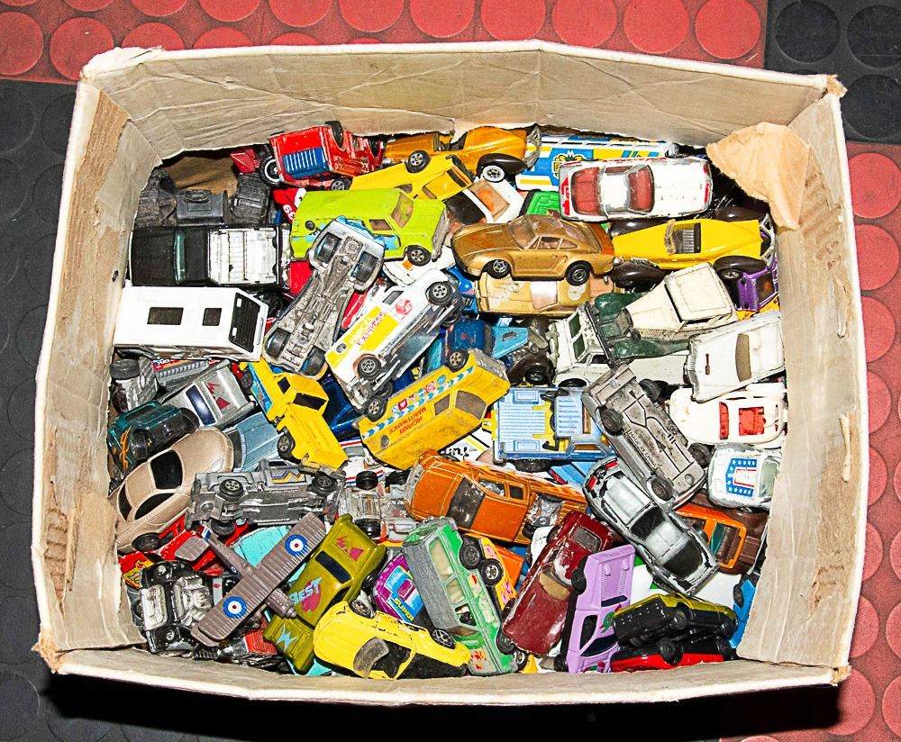 BOX OF OVER 100 VINTAGE HOTWHEELS ASSTD DINKY CARS