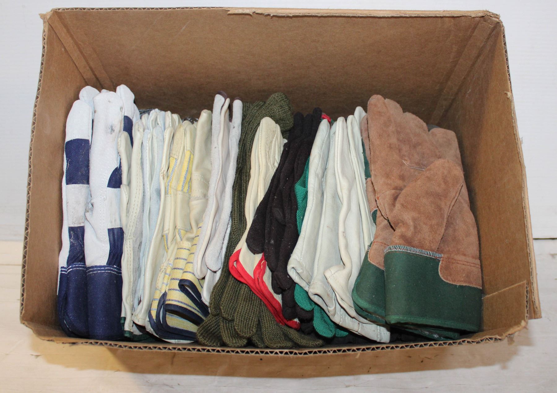 BOX OF PAIRED WORK GLOVES NEW AND USED