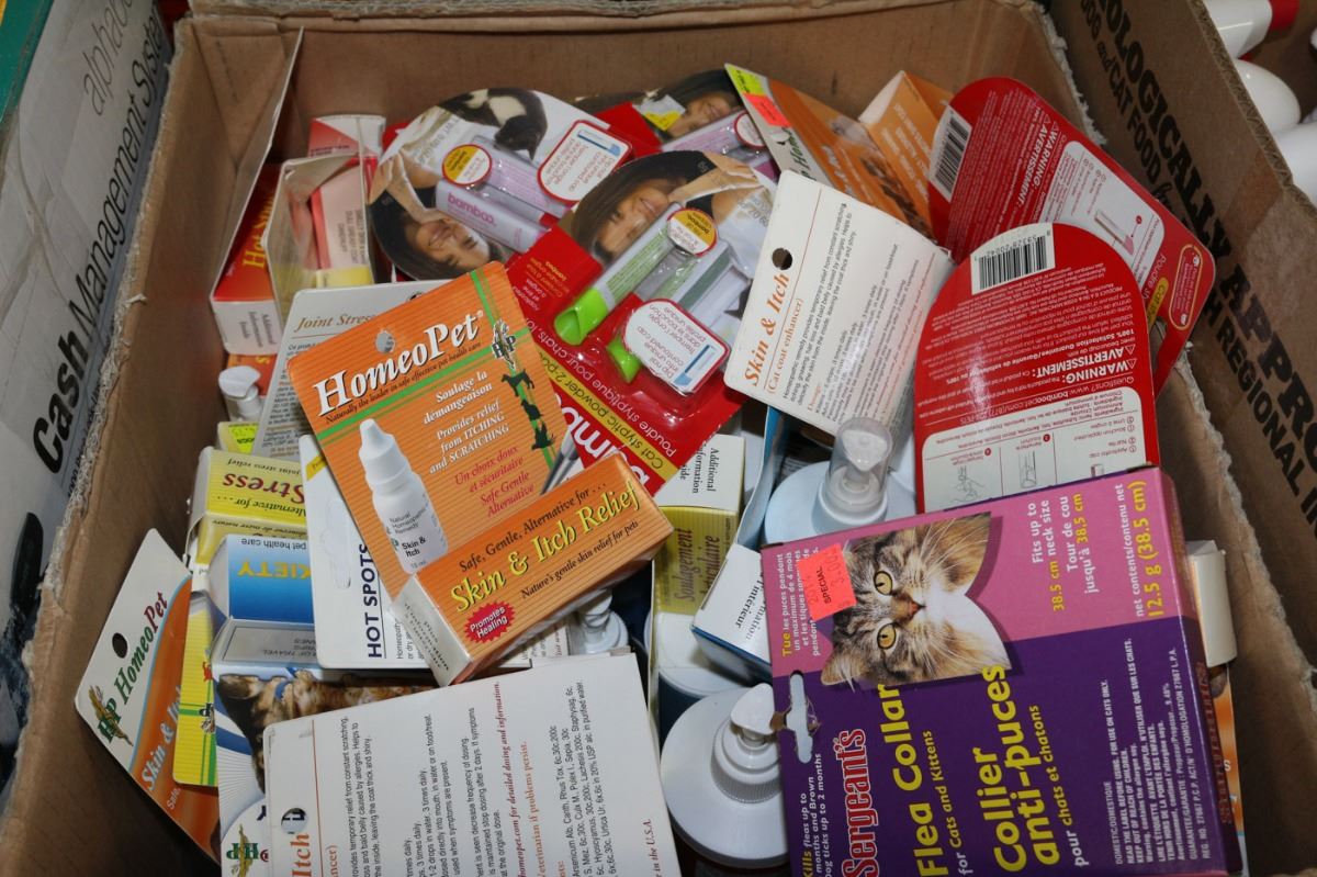 BOX OF PET CLEANING SUPPLIES AND ANTIBOITICS
