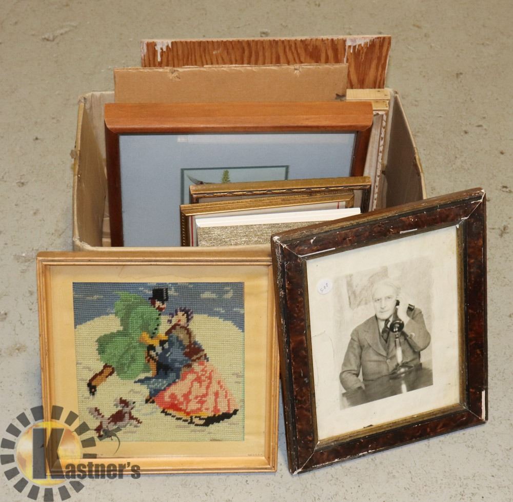 BOX OF PICTURES AND FRAMES
