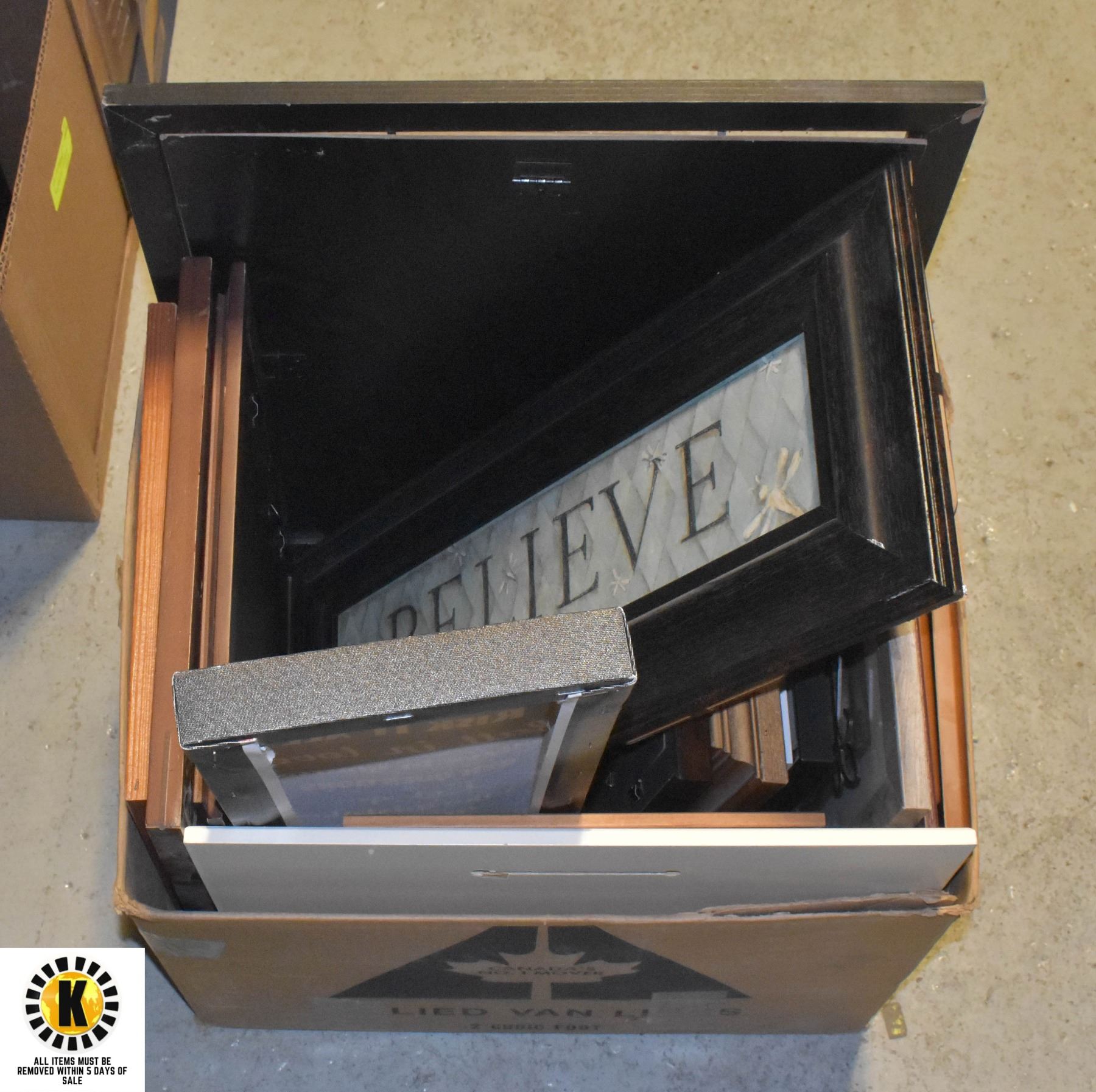 BOX OF PICTURES AND FRAMES