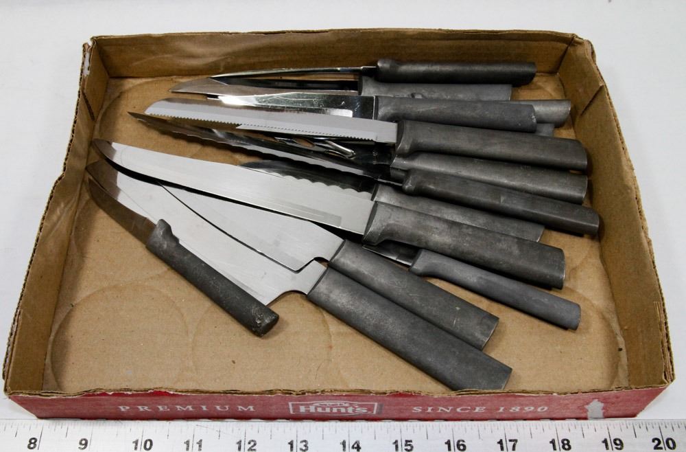 CHEESE KNIFE, OLD FASHIONED BUTCHER KNIFE, FISH KNIFE, STEAK KNIVES, PARING KNIVES AND MUCH MORE, 14 PCS IN TOTAL