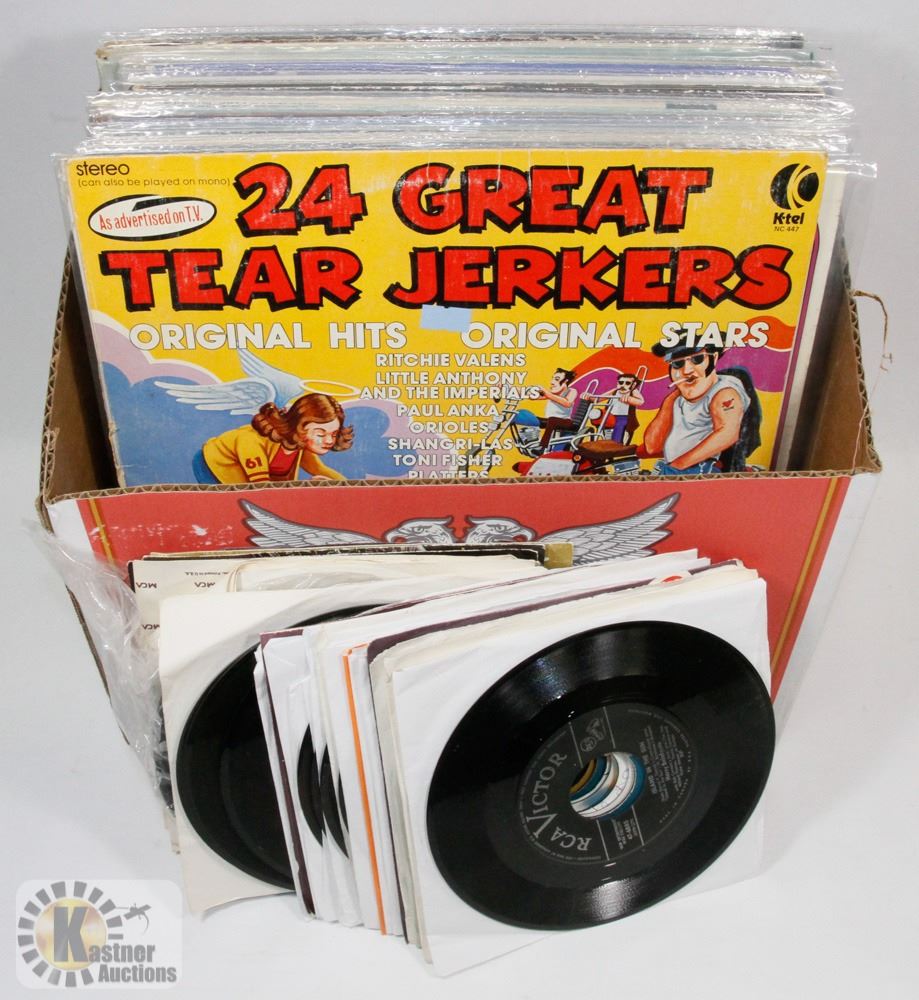 BOX OF RECORDS WITH 45'S INCLUDING SONNY AND CHER,