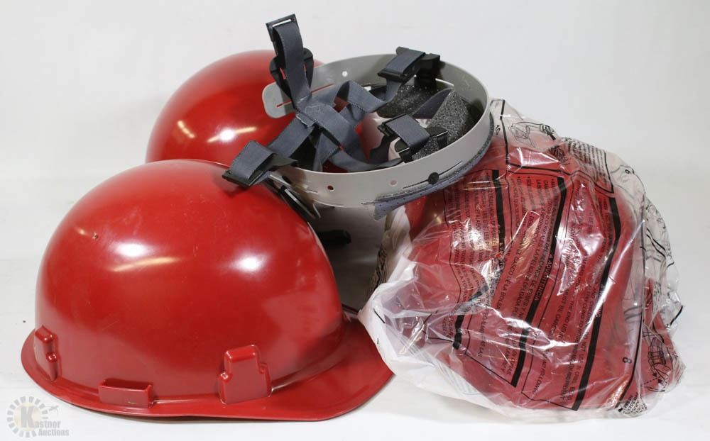 BOX OF RED HARD HATS