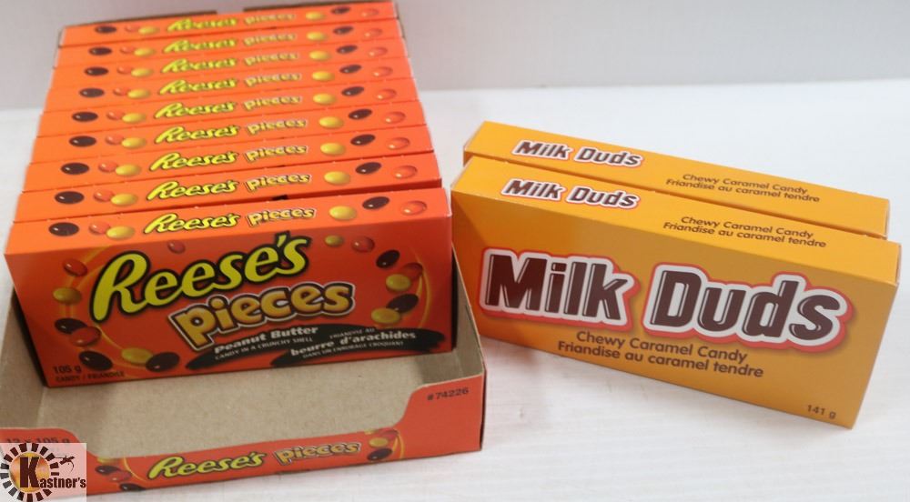 BOX OF REESES PIECES & MILK DUDS CANDY