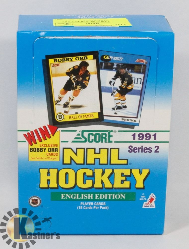 BOX OF SCORE 1991 SERIES 2 NHL HOCKEY CARD PACKS.