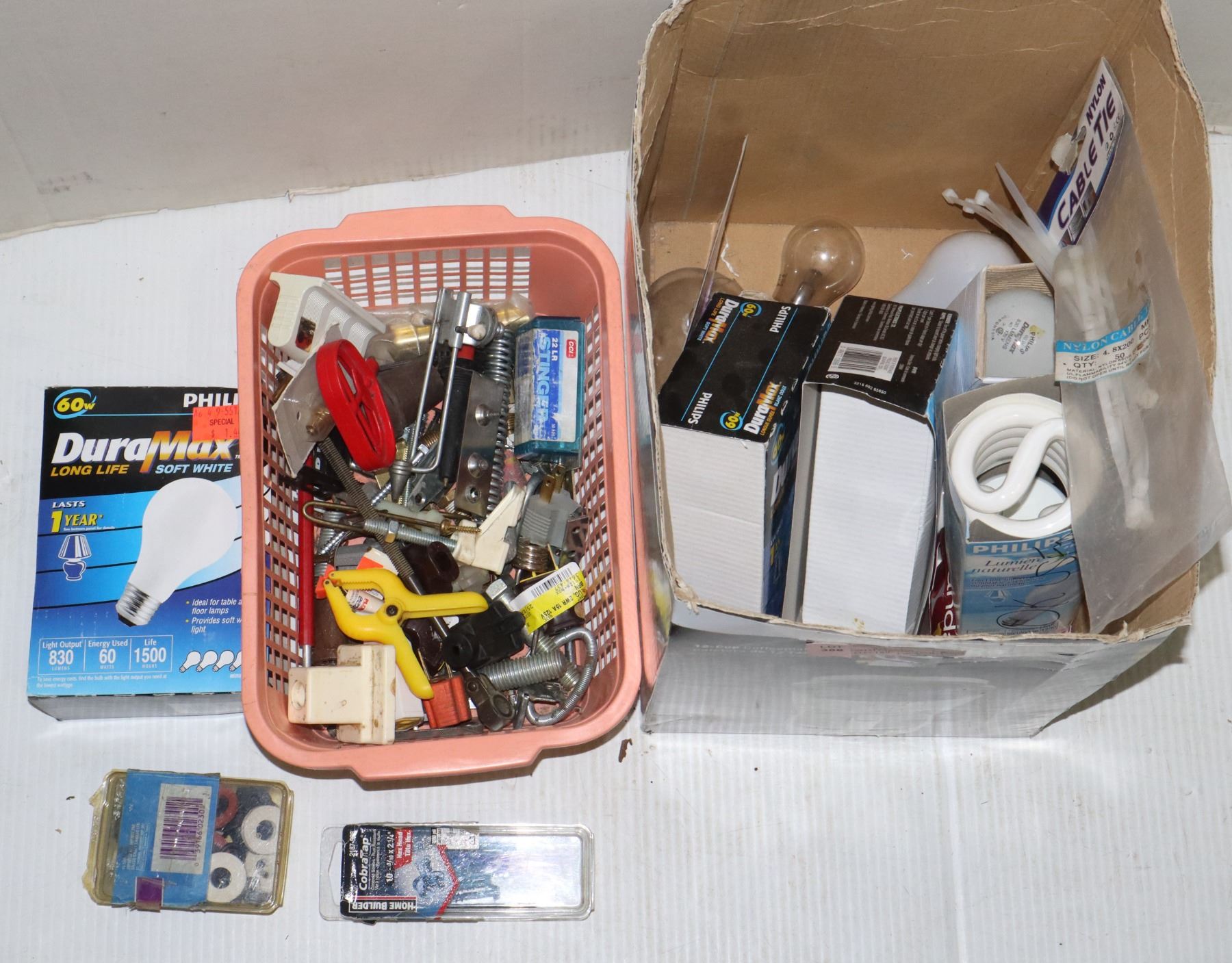 BOX OF SMALL HOME ITEMS, LIGHT BULBS, ELECTRIC