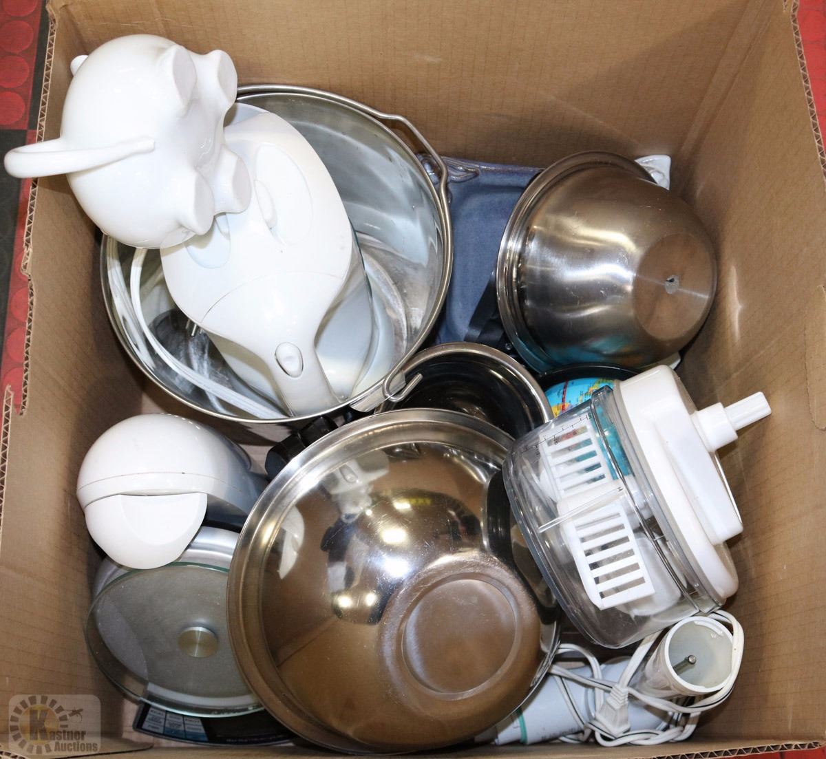 BOX OF SMALL KITCHEN APPLIANCES AND MORE