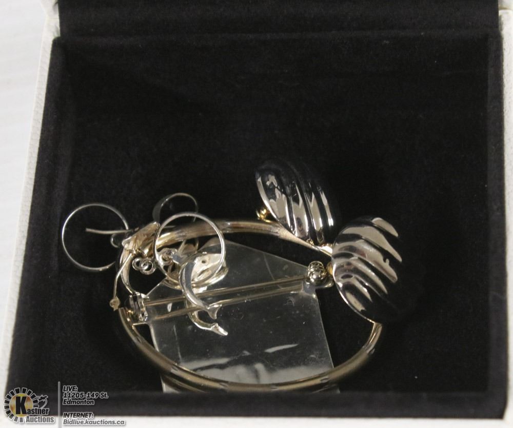 1 PAIR OF DOLPHIN AND 1 PAIR OF SHELL DESIGNED EARRINGS, 1 PC UNPAIRED BIG ROUND EARRINGS AND 1 PC FAMILY HOUSE PIN