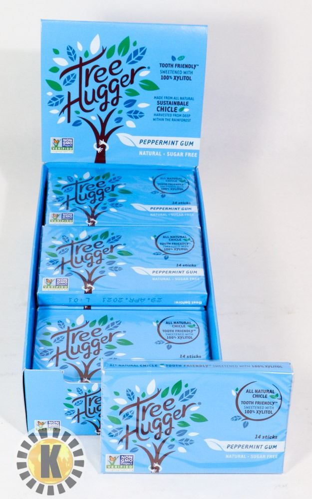 BOX OF TREE HUGGER PEPPERMINT GUM - 12 PACKS