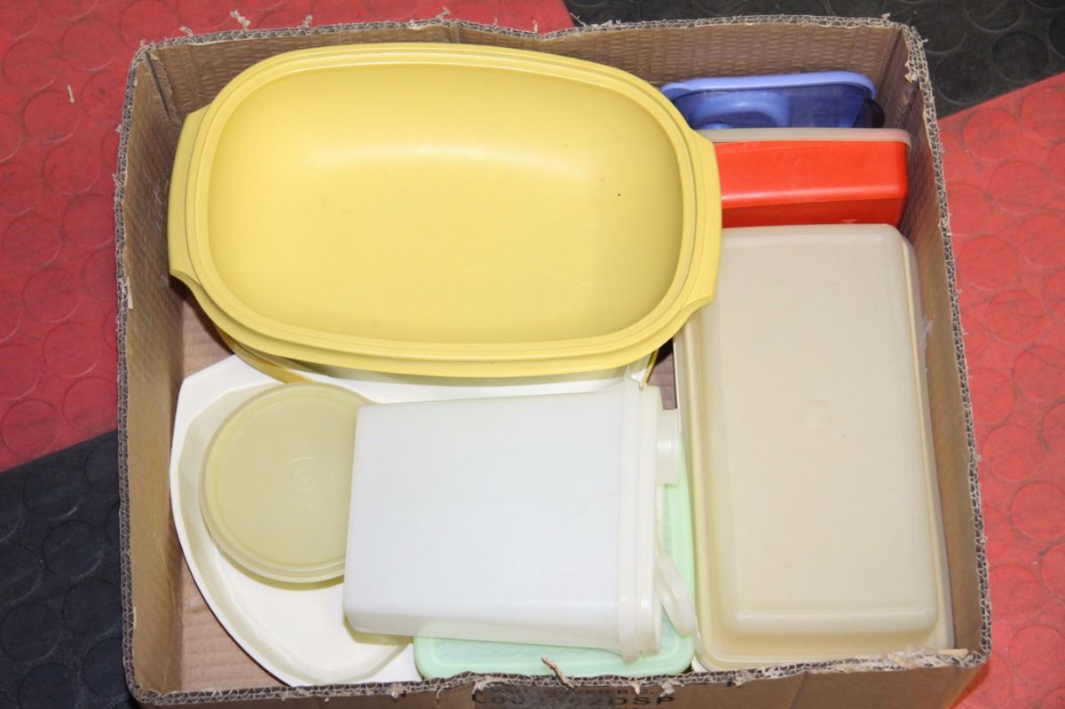 BOX OF TUPPERWARE INCLUDING VEGETABLE STEAMER