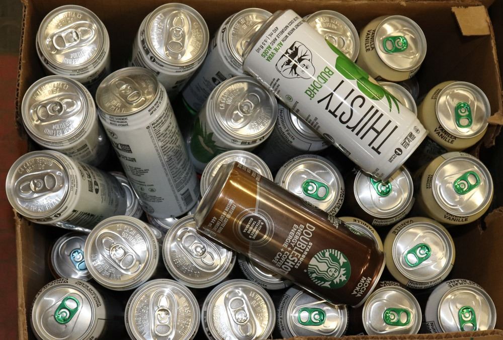 BOX OF VARIOUS CANNED DRINKS, STARBUCKS DOUBLE