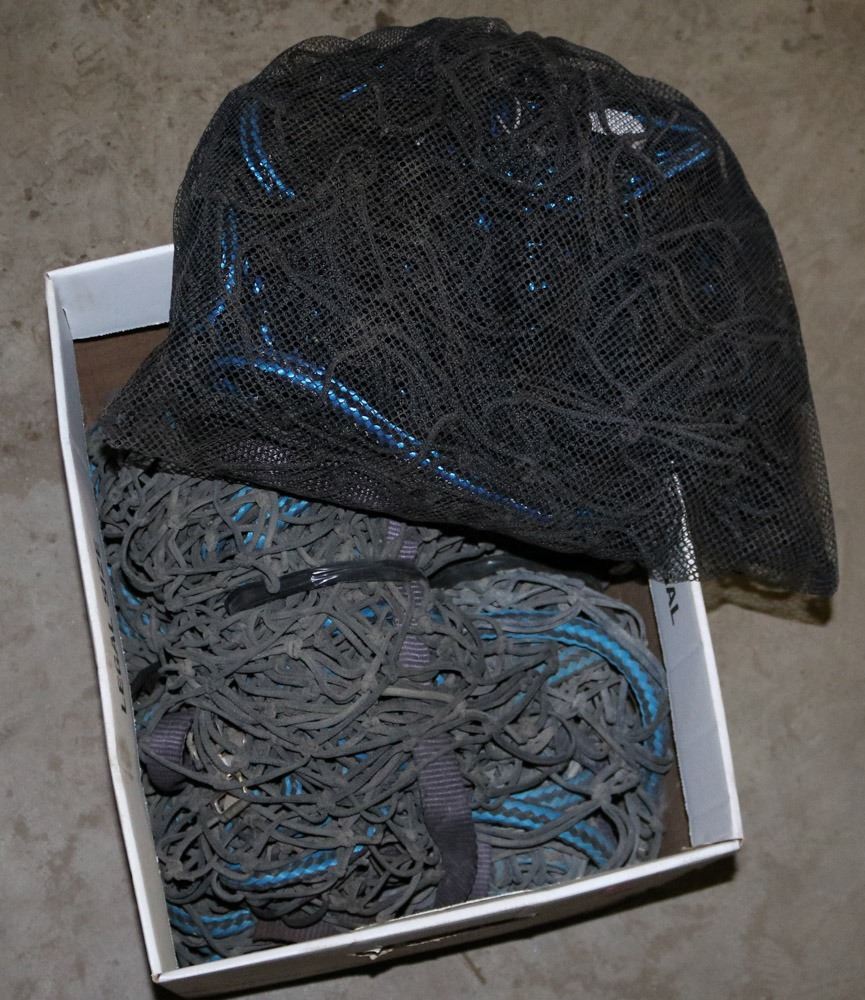 BOX OF VARIOUS SIZED CARGO BUNGEE NETS