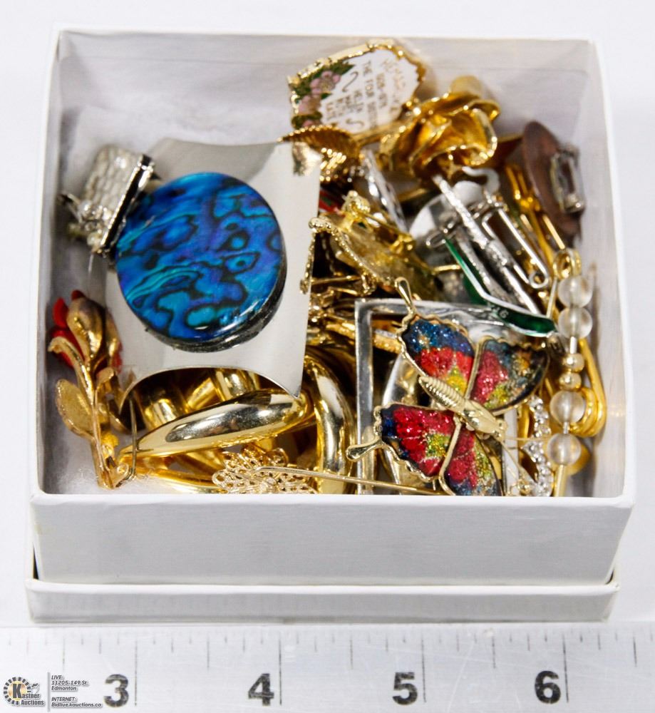 VARIOUS STYLES AND SIZES OF BROOCHES AND PINS JEWELLERY