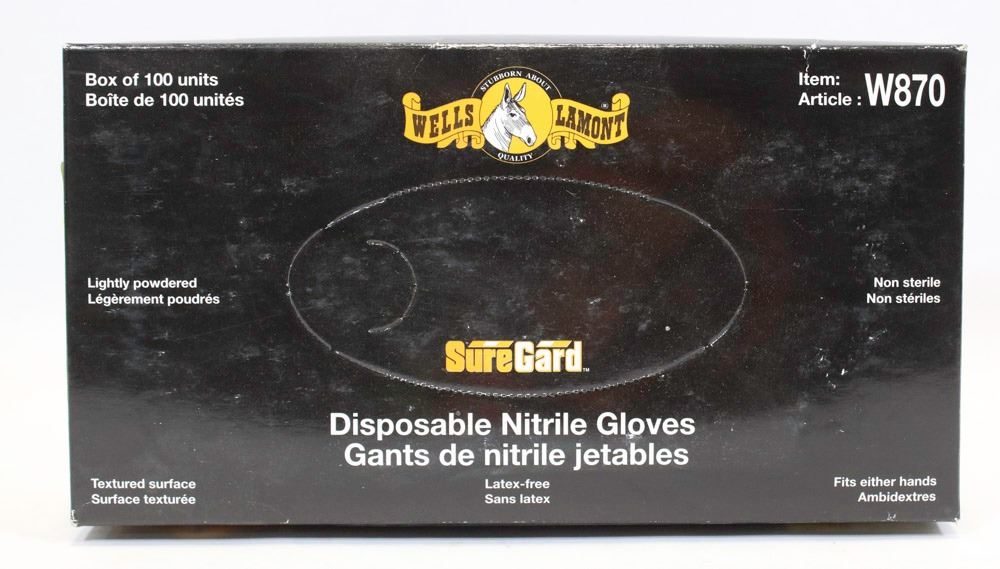 BOX OF WELLS LAMONT NITRILE GLOVES SIZE M