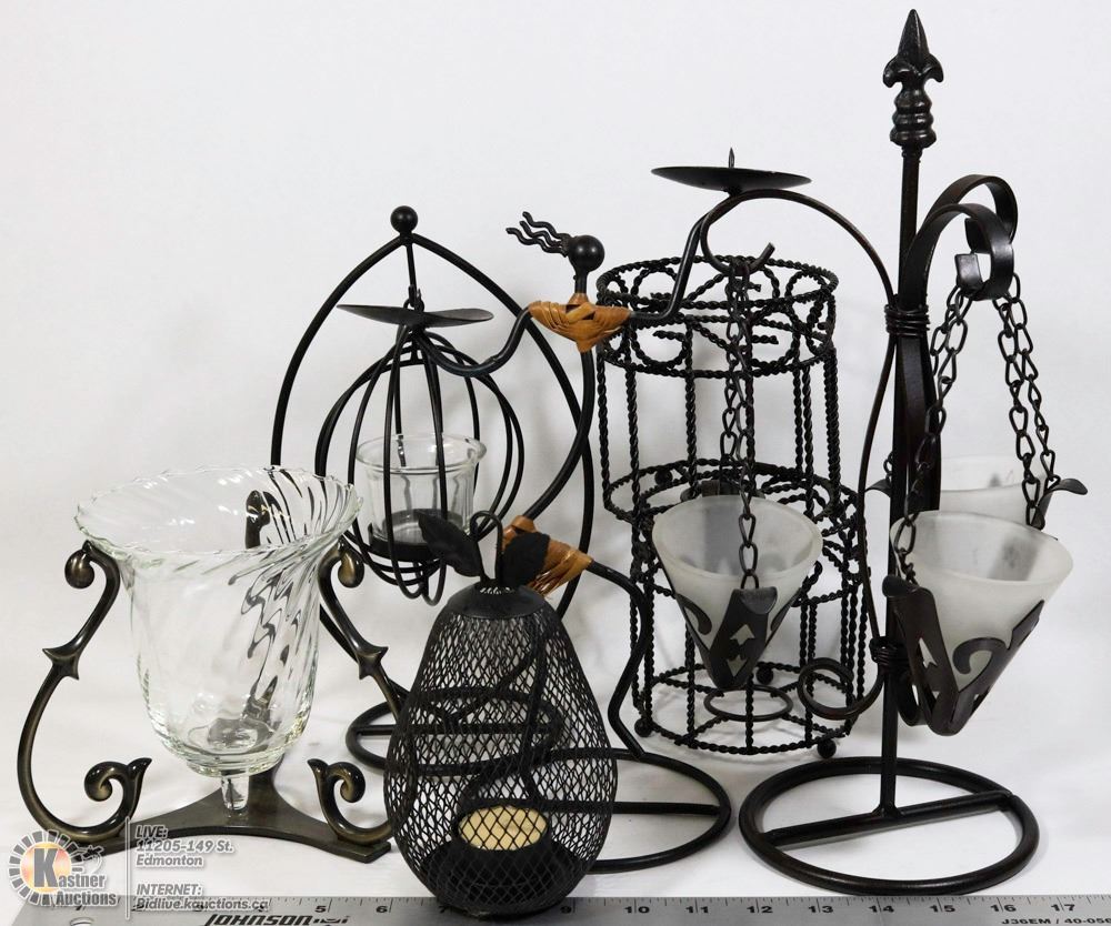 BOX OF WROUGHT IRON DECORATIVE CANDLE HOLDERS