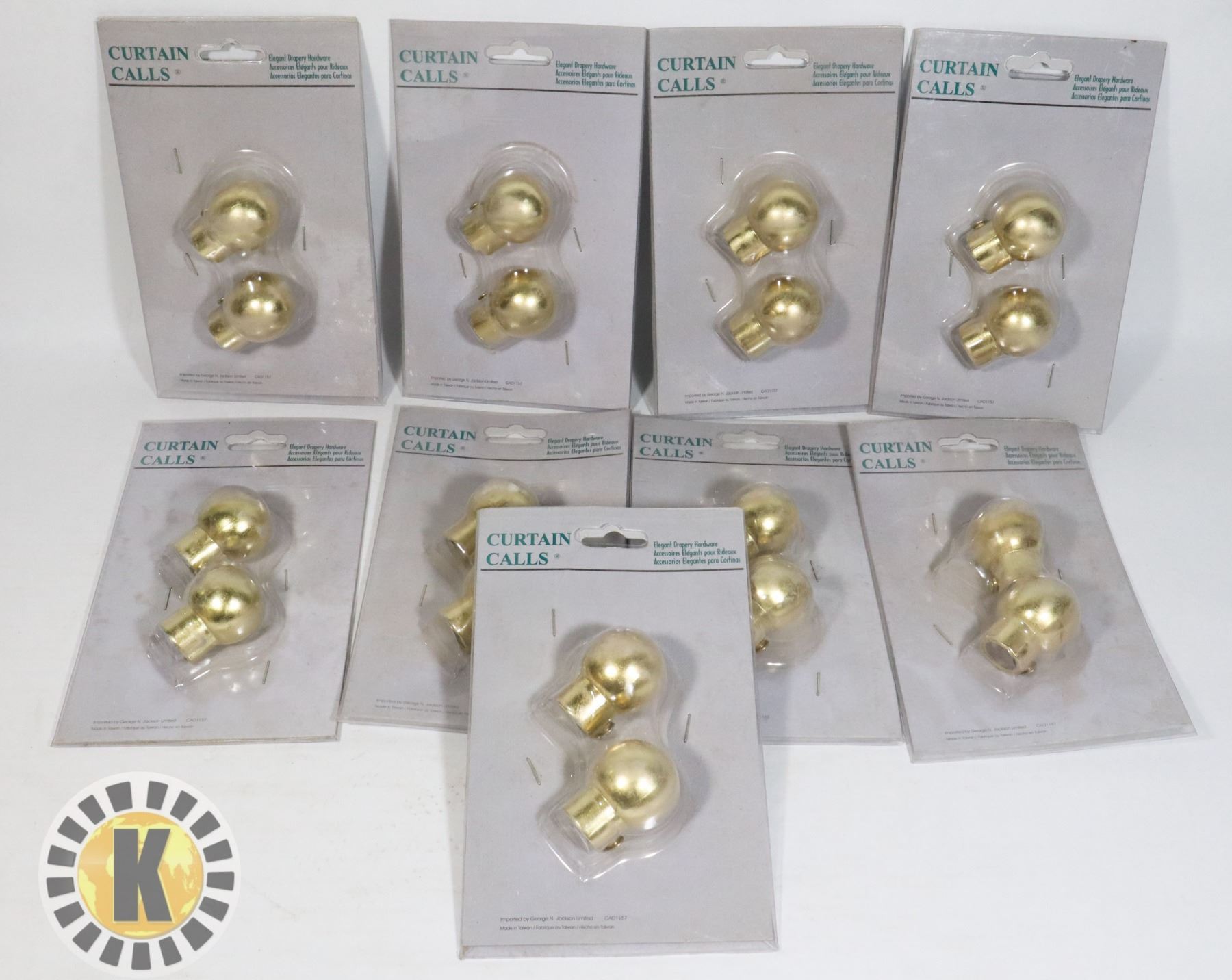 BOX OF X9 GOLD TONE CURTAIN ROD CAPS