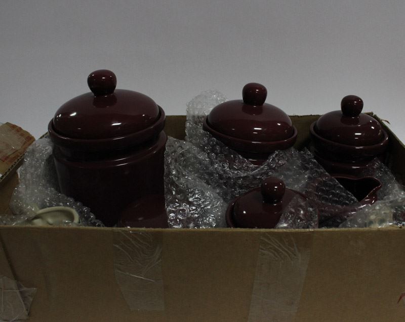 BOX W/ 14-PIECE MILK, SUGAR & 4 DECANTER