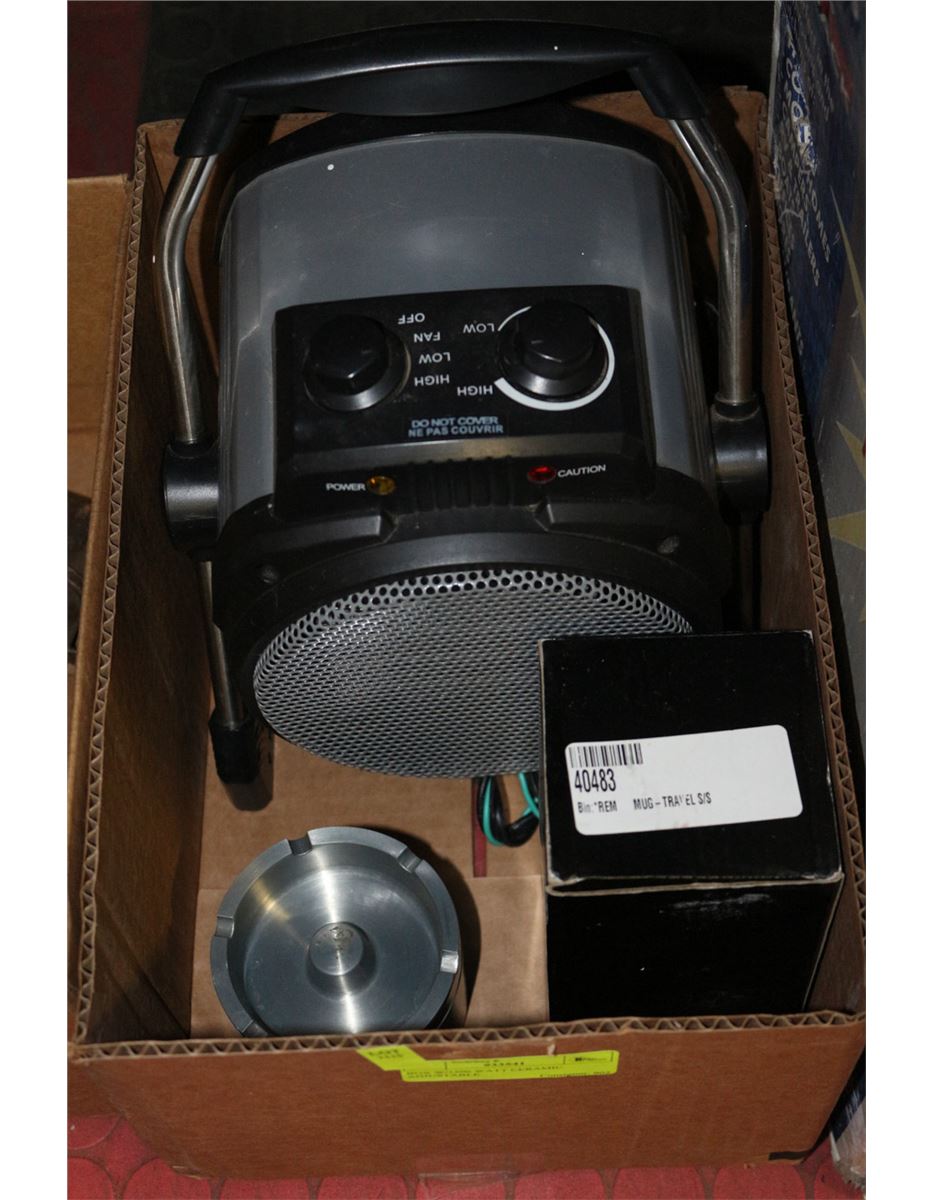 HEATER, NEW TRAVEL MUG & ALUMINUM ASHTRAY