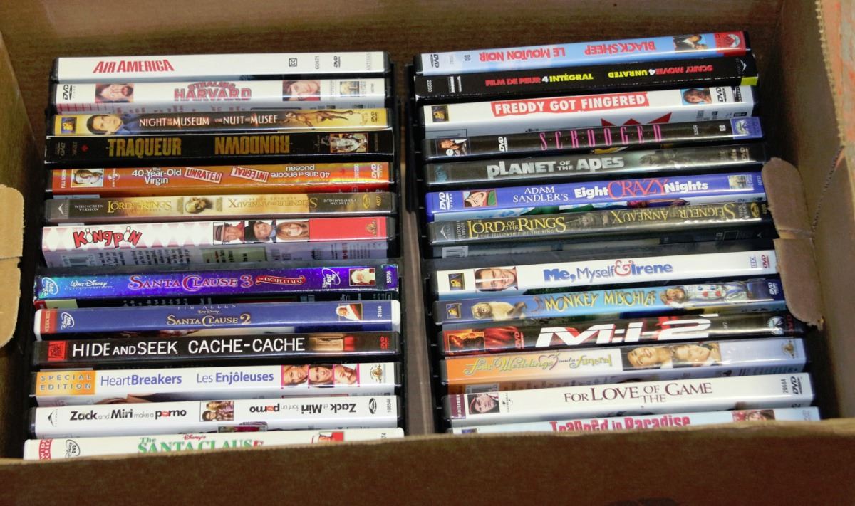 BOX W/ 28 DVDS & HOLDERS