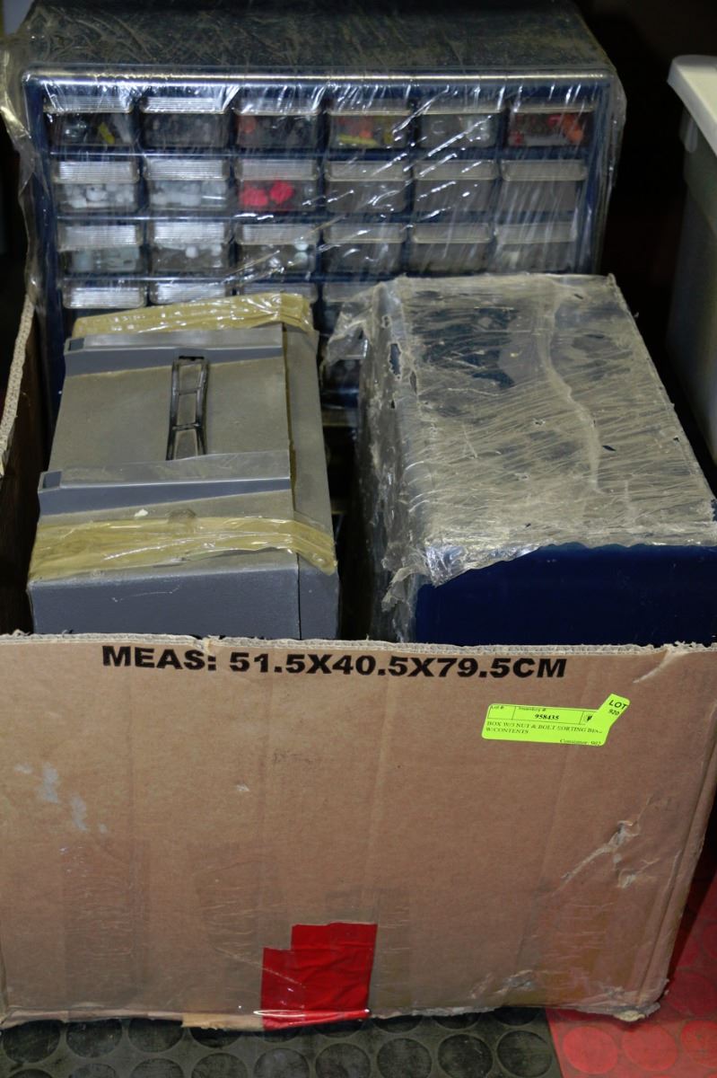 BOX W/3 NUT & BOLT SORTING BINS W/CONTENTS