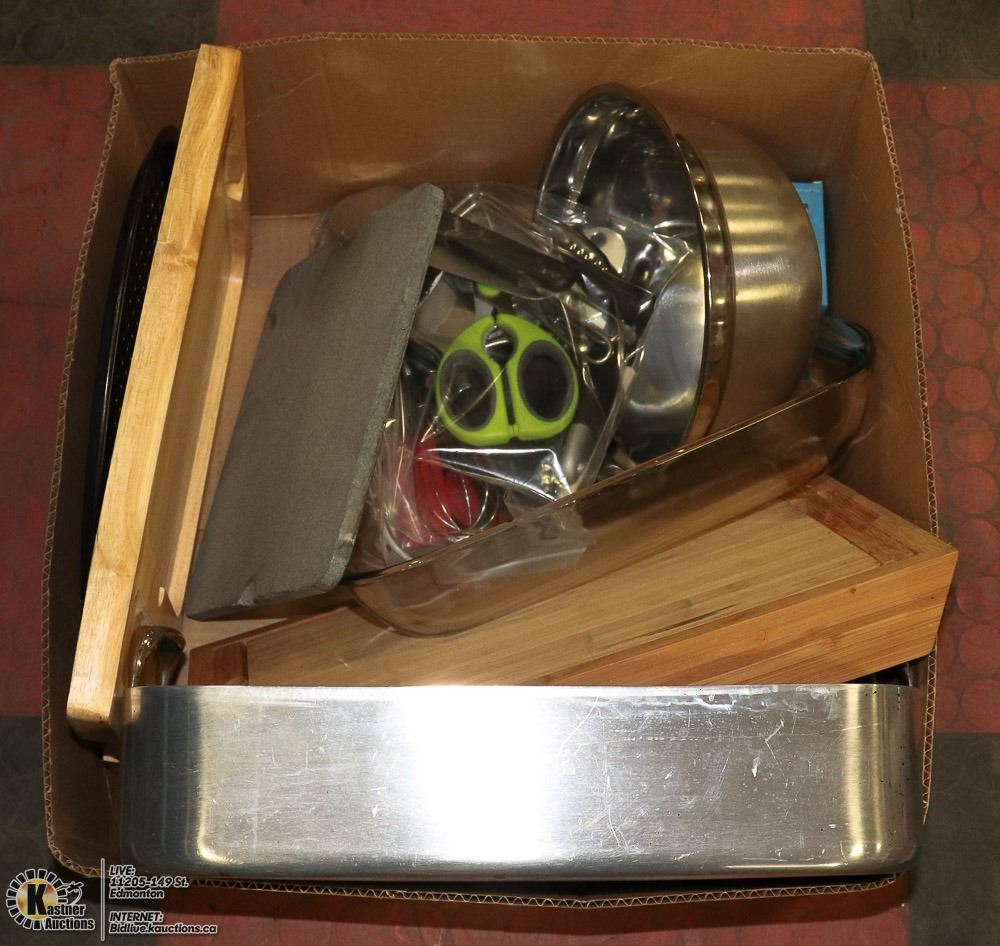 & 2 TRAY SET, WOOD & MARBLE CUTTING BOARD, LARGE NON-STICK PADERNO BAKING PAN, PIZZA PAN, ANCHOR BAKE PAN, MIXING BOWL, & BAG OF BAKING / COOKING ACCESSORIES - GENERAL, HOUSEHOLD