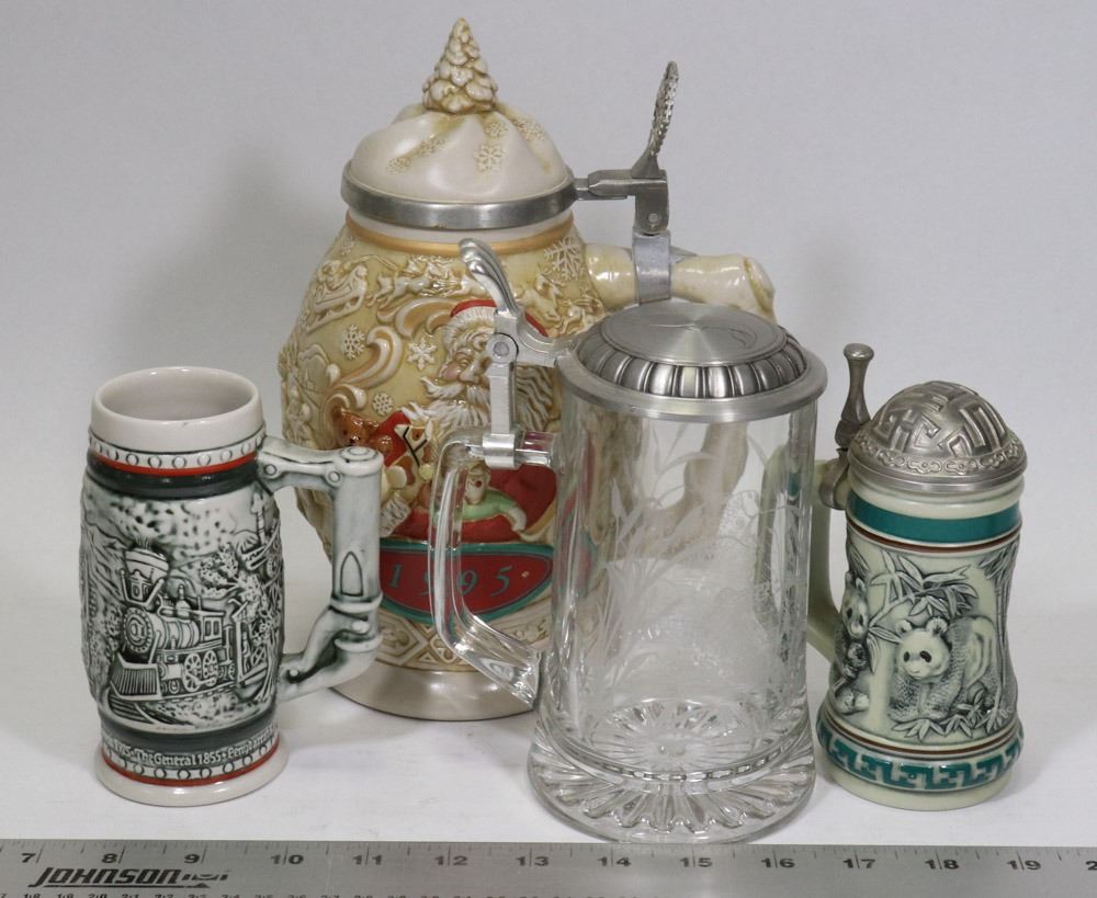 ENDANGERED SPECIES GIANT PANDA (1991) NO'D 00657, FATHER CHRISTMAS STEIN NO'D 05959, FISHING SCENE STEIN AND TRAIN SCENE STEIN NO'D C06866 (NO CHIPS) - COLLECTIBLES