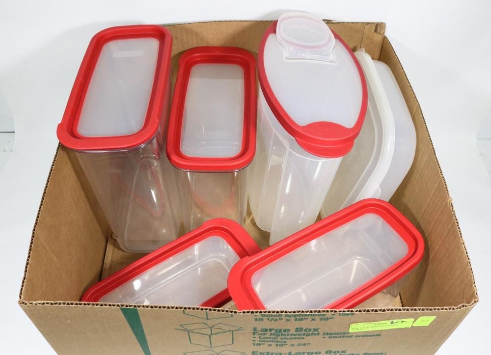 CONTAINERS W/LIDS & 1 CLEAR STORAGE CONTAINER - GENERAL, HOUSEHOLD