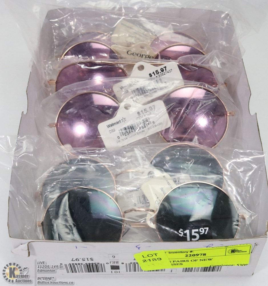 BOX W/ 6 PAIRS OF NEW SUNGLASSES