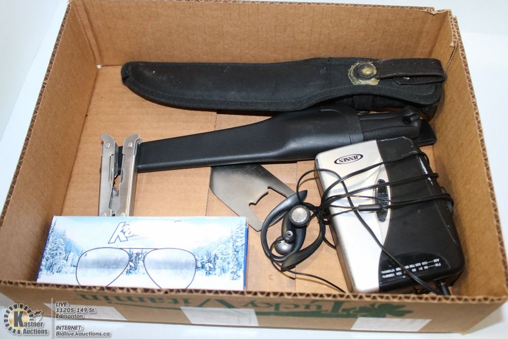 MAKO FISHING KNIFE IN SHEATH, NEW KOKANEE SUNGLASSES, ETC.