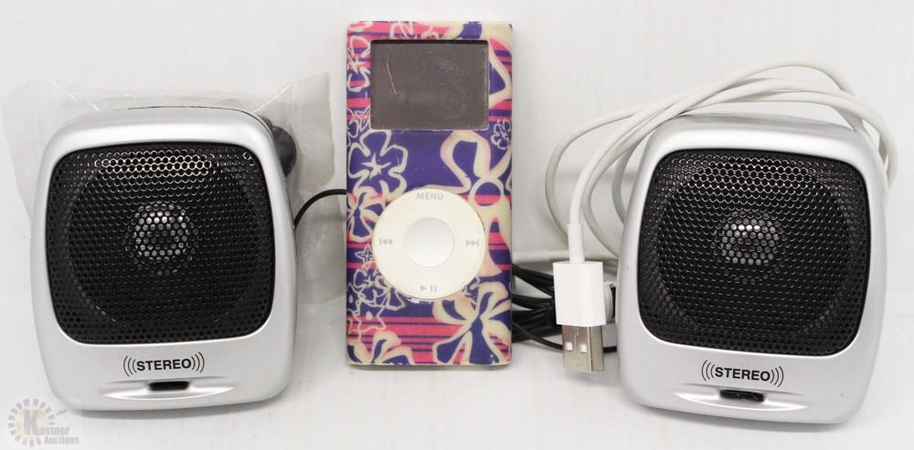 (WORKING), SET OF PLUG-IN SPEAKERS, NEW EARBUDS AND CORD 65 SONGS LOADED