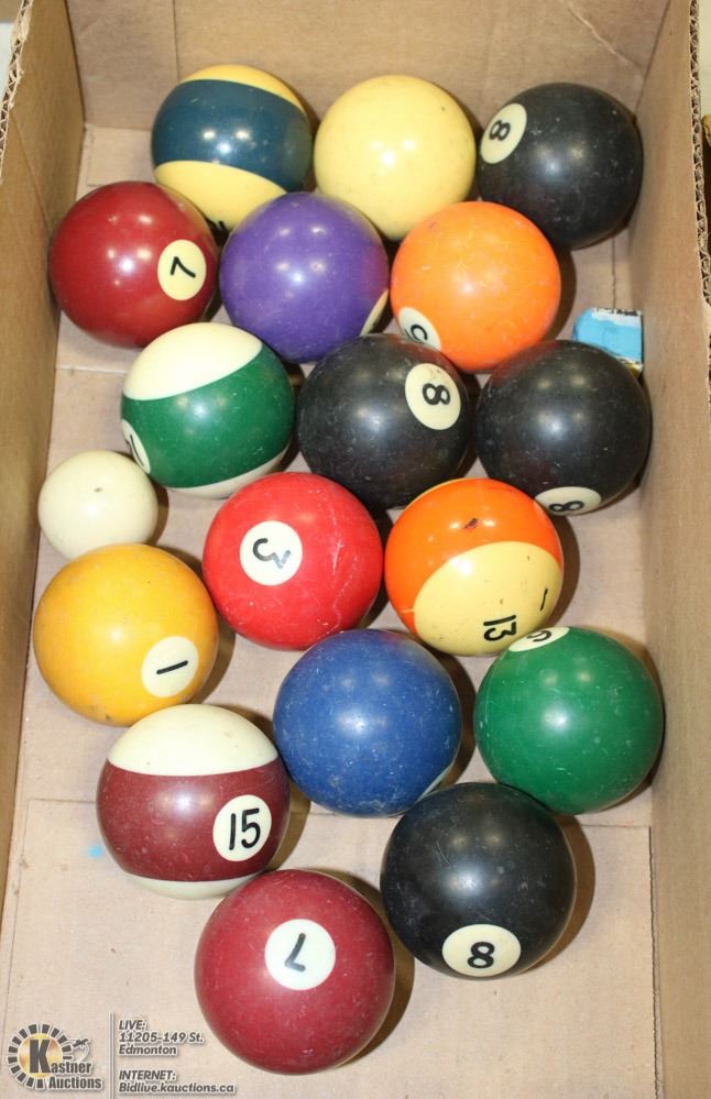 BOX W ASSORTED STANDARD SIZE POOL BALLS