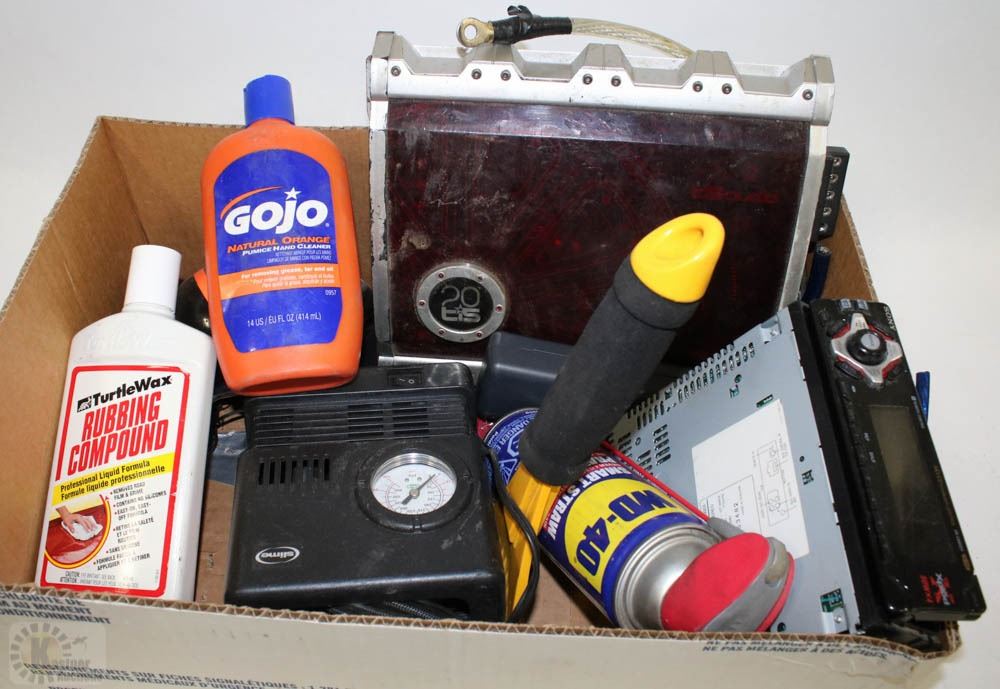 STEREO AND AMP, 12 VT AIR COMPRESSOR, EXHAUST TIP, ETC.