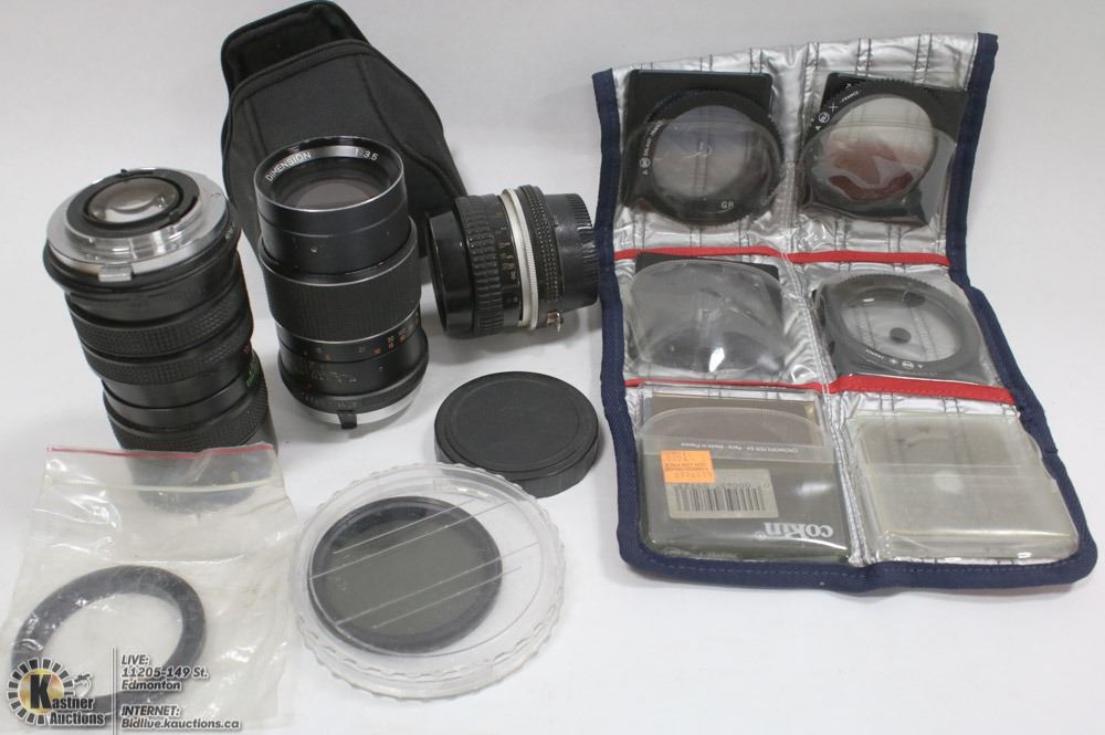 INCLUDES NIKON NIKKOR LENS, 2 OTHER LENSES AND FILTERS