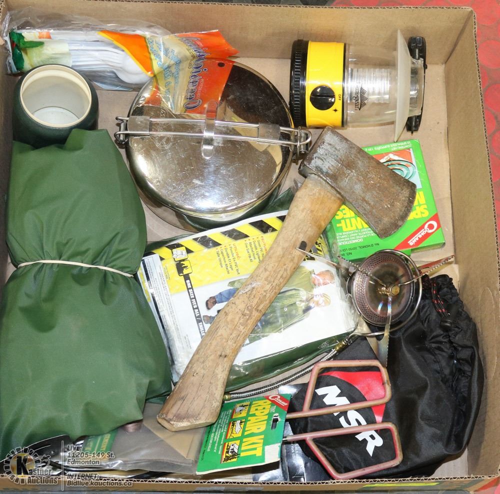 BURNER STOVE, HATCHET, TENT REPAIR KIT, TERA GEAR LED LIGHT, STORM FIGHTER GEAR, ETC. OUTDOOR