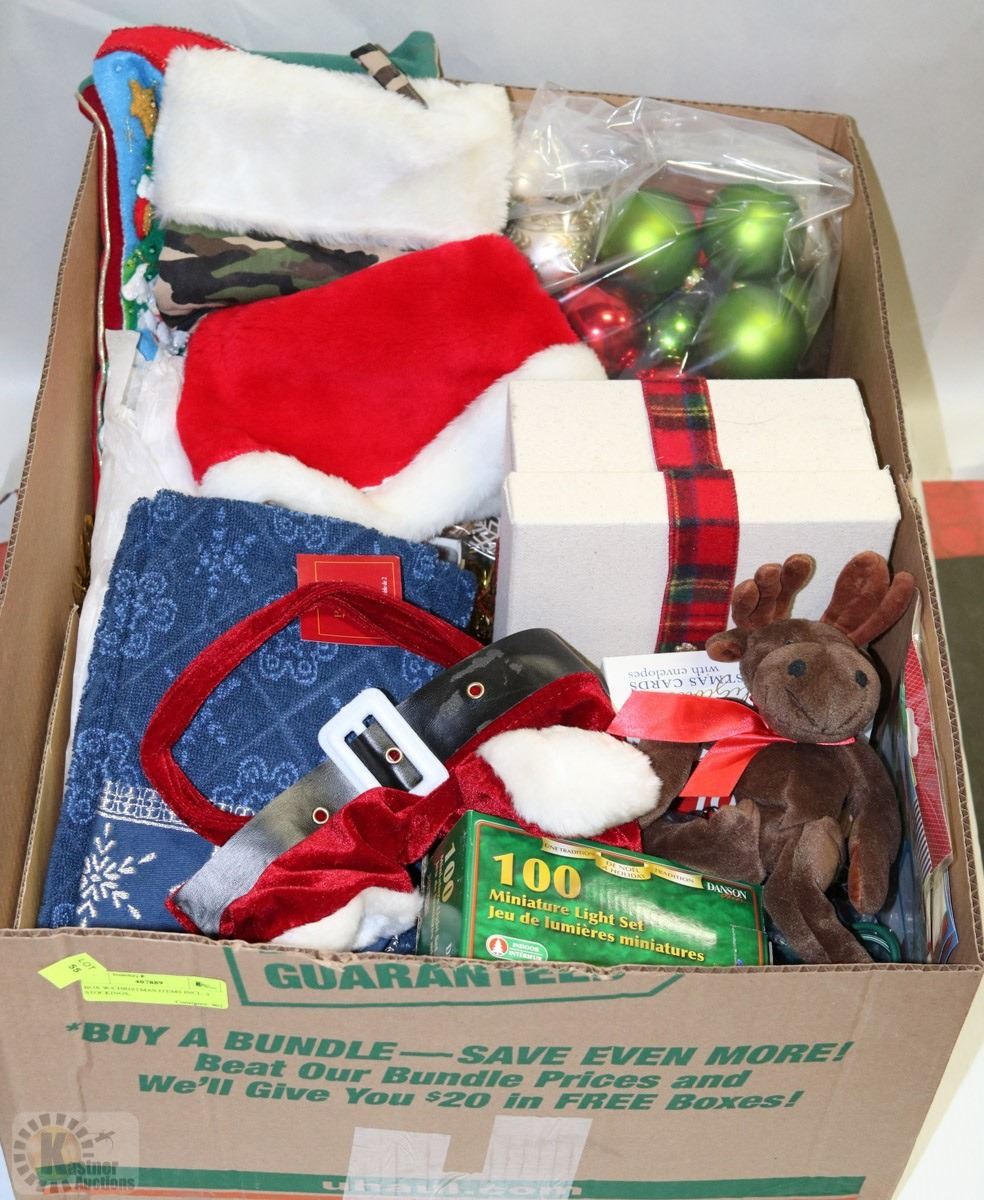 NEW CANDLE SET, CARDS, TREE DECORATIONS, LIGHTS, BULBS, NEW TOWEL SET, ETC.