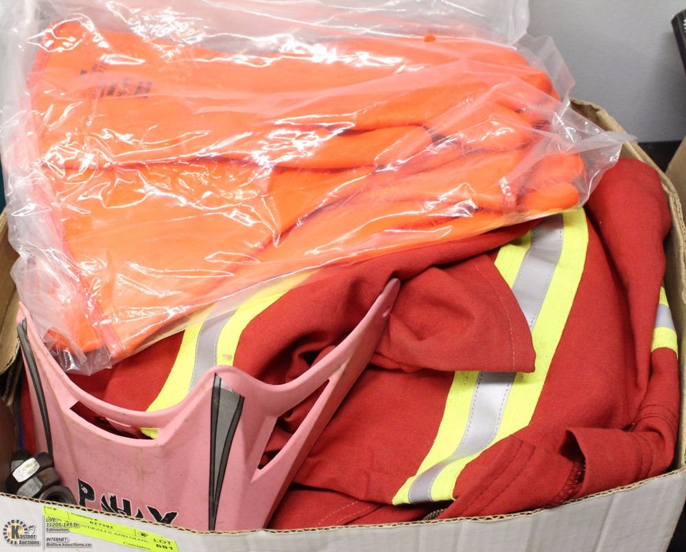 BOX W/ COVERALLS AND GLOVES