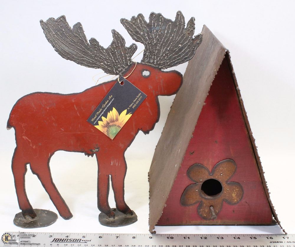 & WOOD/METAL BIRD HOUSE FROM METAL PETALS GARDEN ART, NOVA SCOTIA