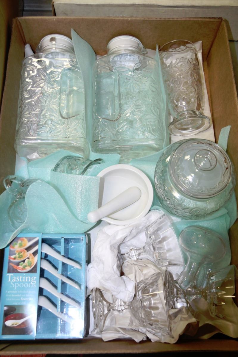 HOUSE CANISTERS, SUGAR/CREAMER, OIL DECANTER, COOKIE JAR, TASTING SPOONS, ETC.