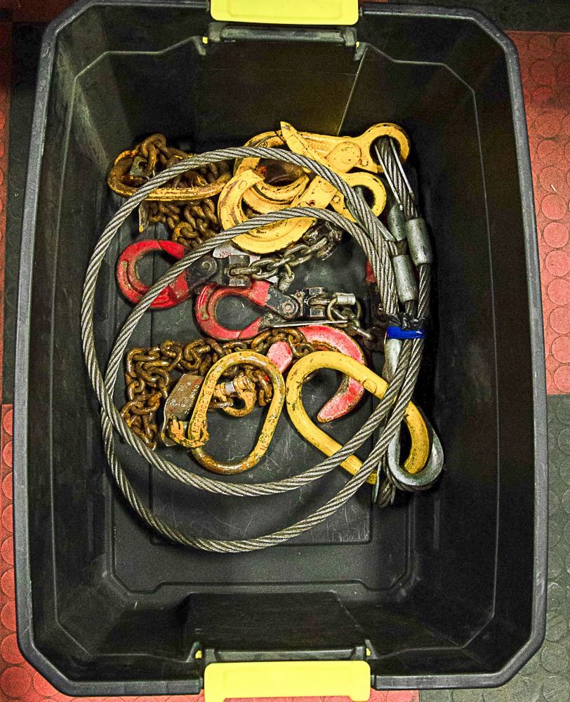 BOX W/ HOIST CHAINS & DUAL HOIST SLING. 3500 LBS.