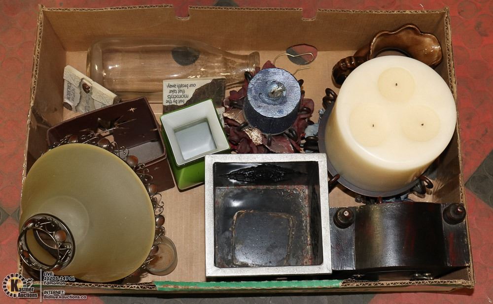 CLOCK (WKG), LARGE CANDLE STAND W/PARTYLITE CANDLE, CREAMER, PLANT HOLDER, PARTYLITE TEALIGHT, ETC. - GENERAL, HOUSEHOLD/COLLECTIBLES