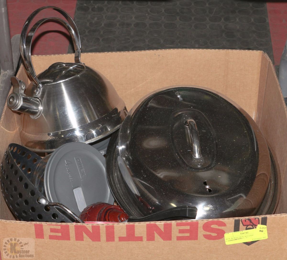 ROASTER, PYREX MICROWAVEABLE BOWLS WITH LIDS,KETTLE ETC.